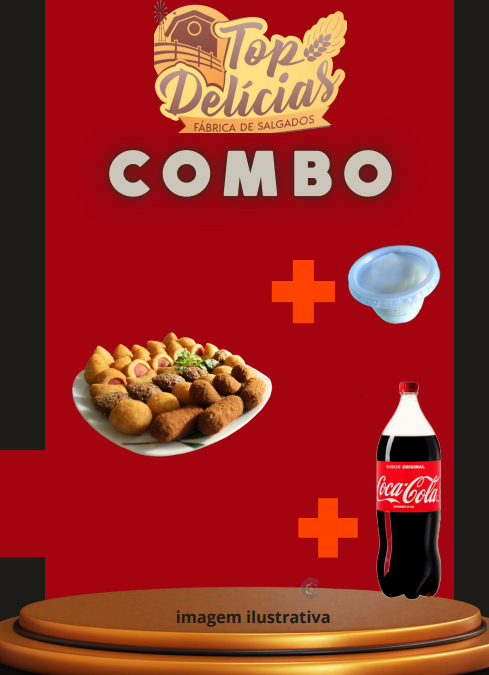 1 Cento de salgadinhos tamanho festa, 1 coca 2 litros, escolha até 4 sabores